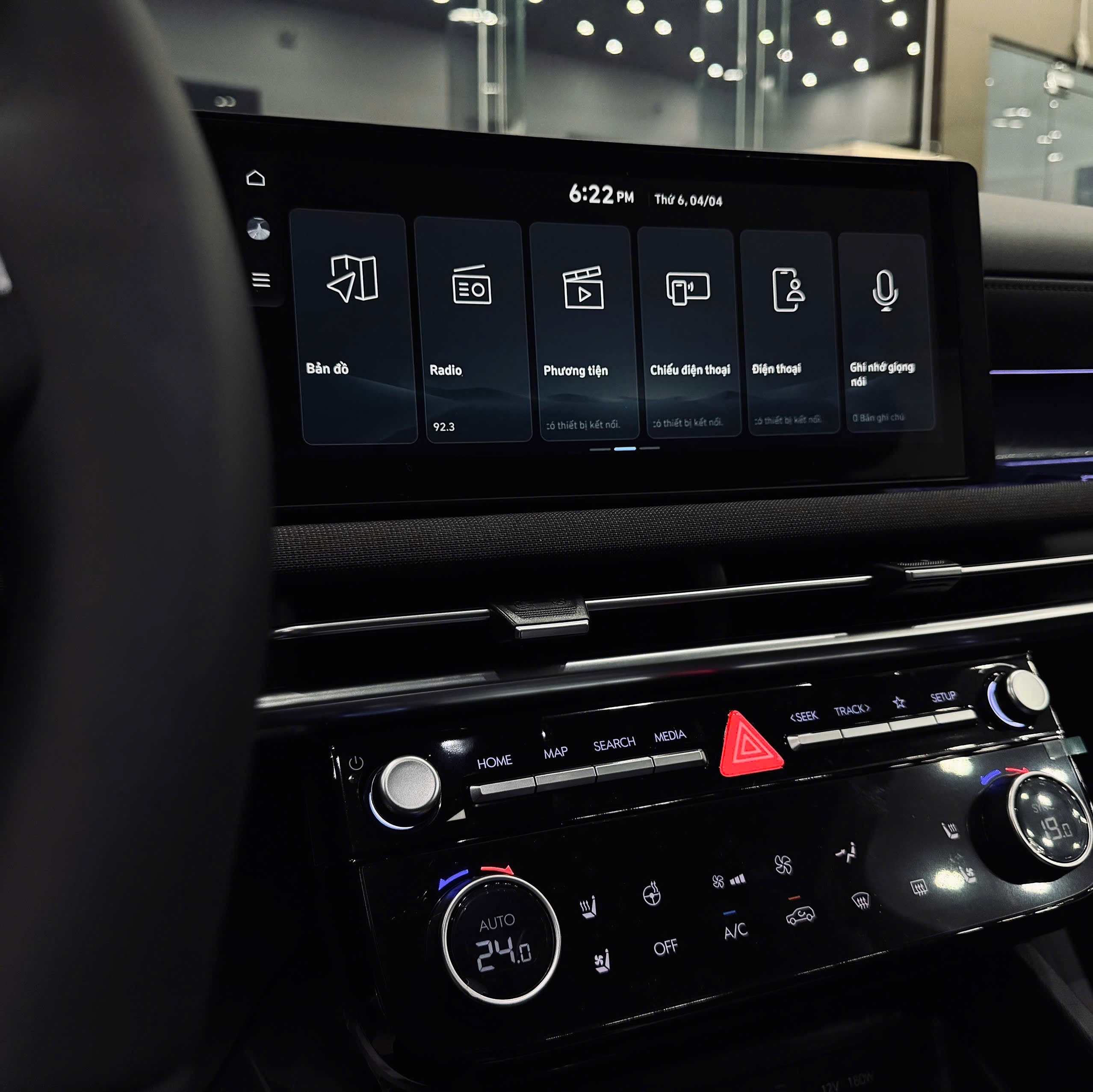 Vào bên trong, điểm nhấn đáng chú là cụm màn hình cong kết hợp từ 2 màn hình khác nhau giống với Hyundai Santa Fe thế hệ mới vừa ra mắt Việt Nam. Trong đó, đồng hồ hiển thị sau vô-lăng là màn hình kỹ thuật số 12,3 inch. Màn hình giải trí cảm ứng cũng có kích thước 12,3 inch có kết nối Apple CarPlay/Android Auto không dây.